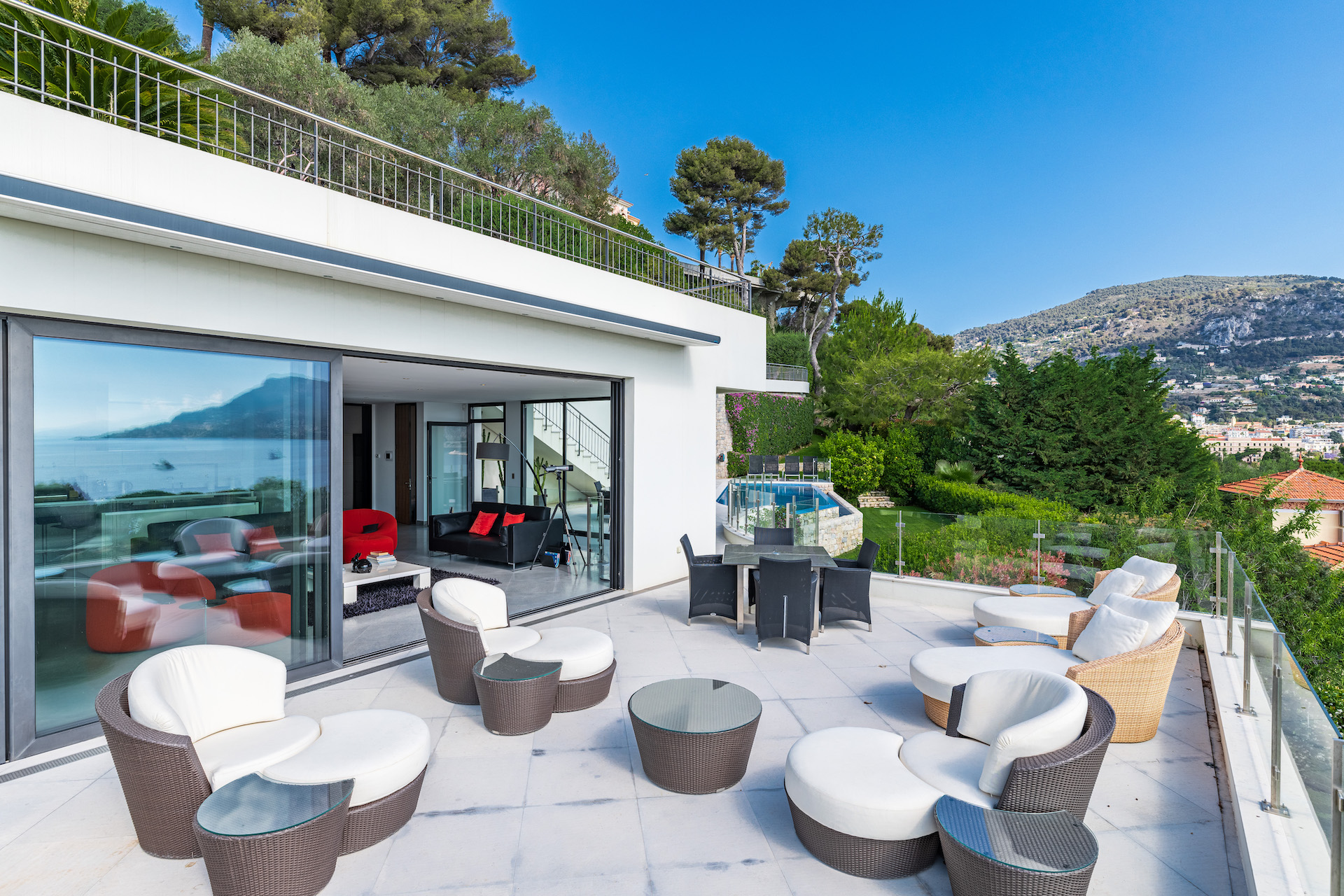 From the expansive terrace, you can take in sweeping panoramas of the Ocean, where golden sandy beaches stretch along the coastline and waves crash rhythmically against the shore.